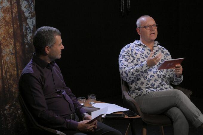 Die Moderatoren Dr. Tobias Krämer (l.) und Detlef Kühlein im Studio des ERF.