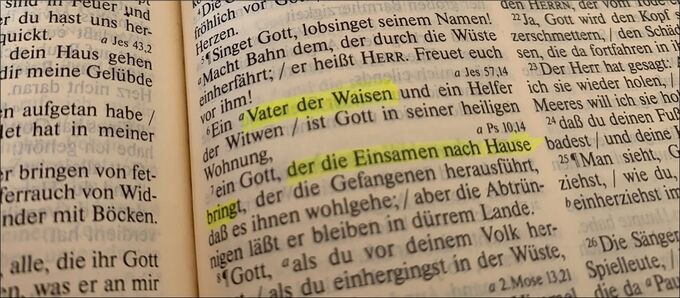 Ein Vater der Waisen und ein Helfer der Witwen ist Gott in seiner heiligen Wohnung. Ein Gott, der die Einsamen nach Hause bringt, der die Gefangenen herausführt, dass es ihnen wohlergehe.